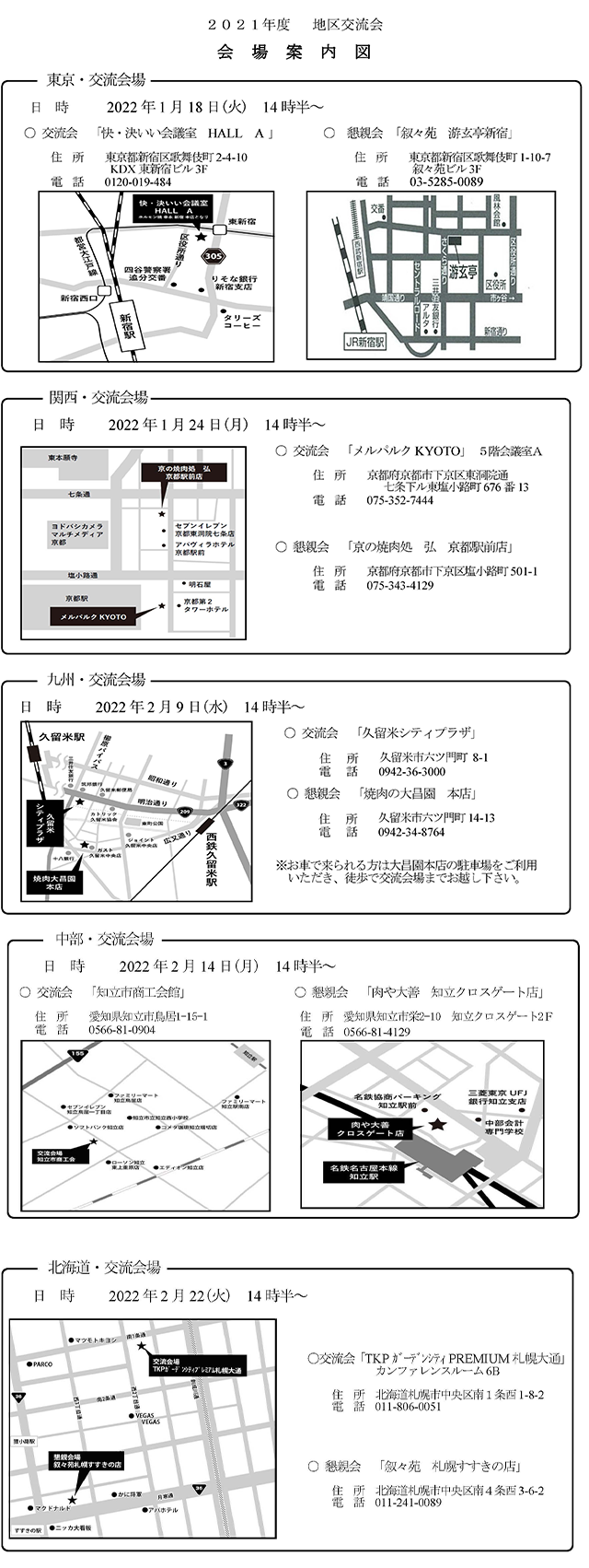1. 地区交流会開催日、開催場所 (別紙の通り)
